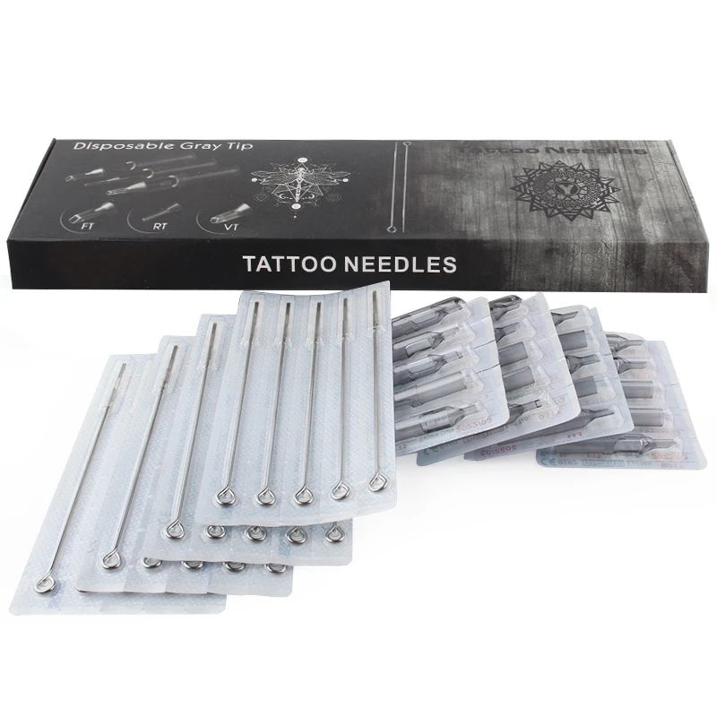 20Pcs Stainless Steel Tattoo Needles Set With 20Pcs Disposable Tattoo Tips Tubes Set Sterile Nozzle Semi-Permanent Gray