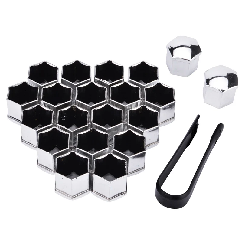 20pcs 17mm 19mm Wheel Nut Bolt Head Cover Cap Protective Bolt Caps Exterior Decoration Protecting Bolt Rims Silver