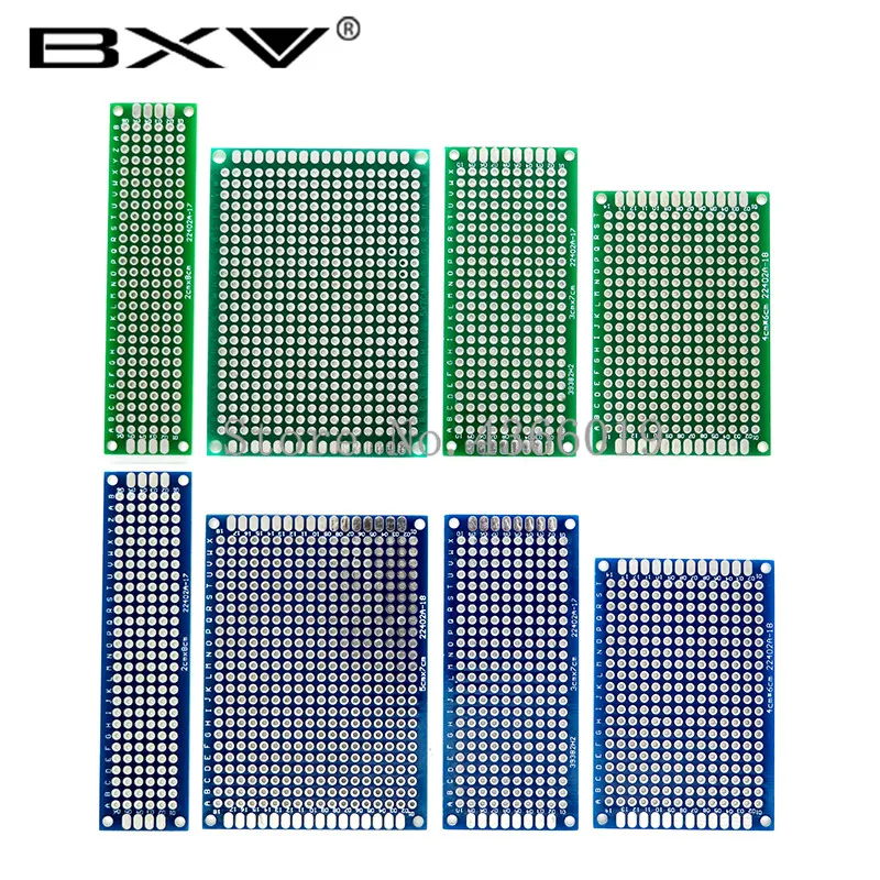 20pcs/lot 5x7 4x6 3x7 2x8cm Double Side Prototype Diy Universal Printed Circuit PCB Board Protoboard For Arduino Green/Blue