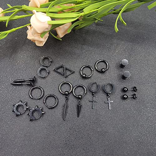 ✔️Set di orecchini da uomo di valore: il pacchetto include 20 pezzi di orecchini in diversi stili, piccoli orecchini a cerchio, orecchini a cerchio pendenti a croce, orecchini a triangolo neri, orecchini a tunnel, quantità sufficiente per le tue esigenze di abbinamento per diverse occasioni.