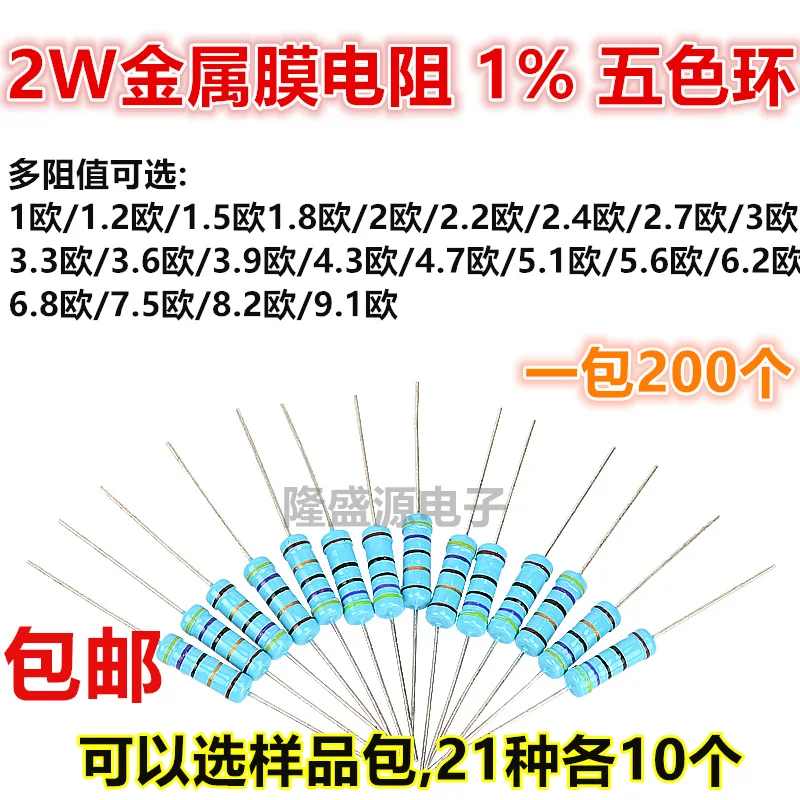 210PCS 2W metal film resistor package 1% 1R-9.1R 1.2R 1.8R 2R 2.2R 2.4R 2.7R 3R 3.3R 3.6R 3.9R 4.3R 4.7R 5.1R 5.6R 6.8R 7.5R 8.2