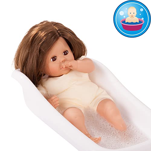 Götz 2116066 Cosy Aquini Stripe Vibes bambola da bagno - bambola con capelli castani, occhi marroni che dormono in set da 7 pezzi - bambola per bambina 33 cm