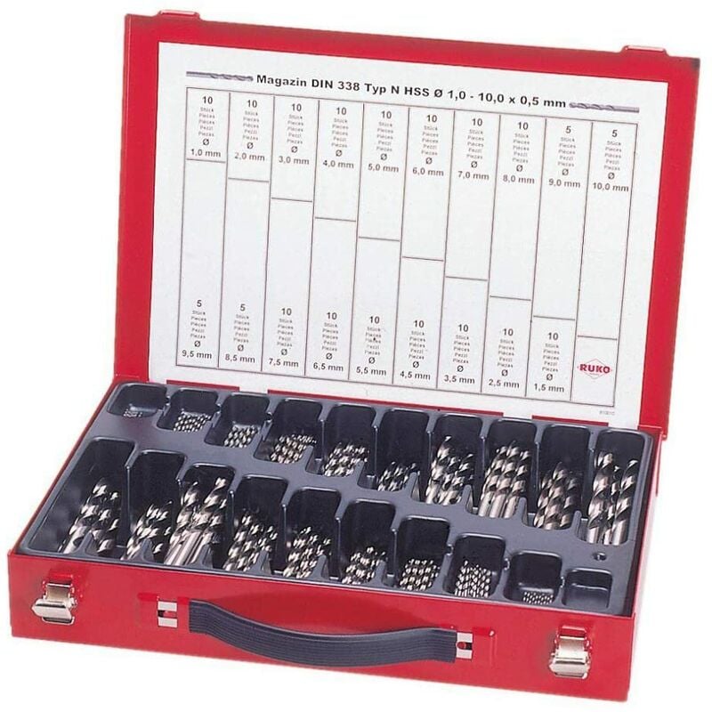 RUKO 215200 - Juego de 170 brocas DIN 338 Tipo N HSS Cobalto rectificadas, con split point
