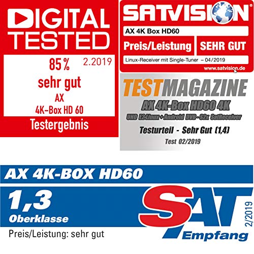 AX HD60 4K UHD 2160p E2 Linux 1 x DVB-S2X ricevitore satellitare con cavo HDMI [preprogrammato per Astra & Hotbird] incl. chiavetta WLAN Anadol®