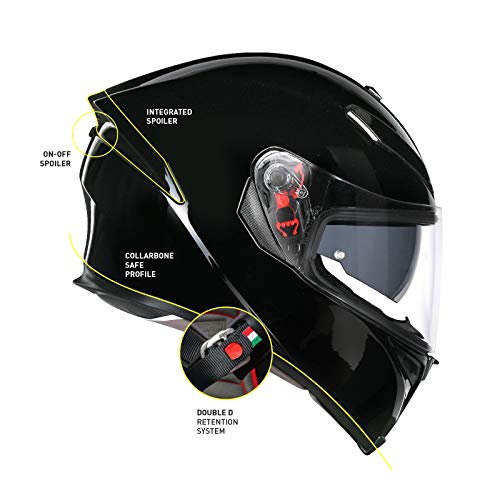 AGV K5 S ECE 22-05 Solid Casco Moto Integrale ECE 22-05 in Carbonio-Fibra di Vetro, con Visierino Parasole, Nero, S