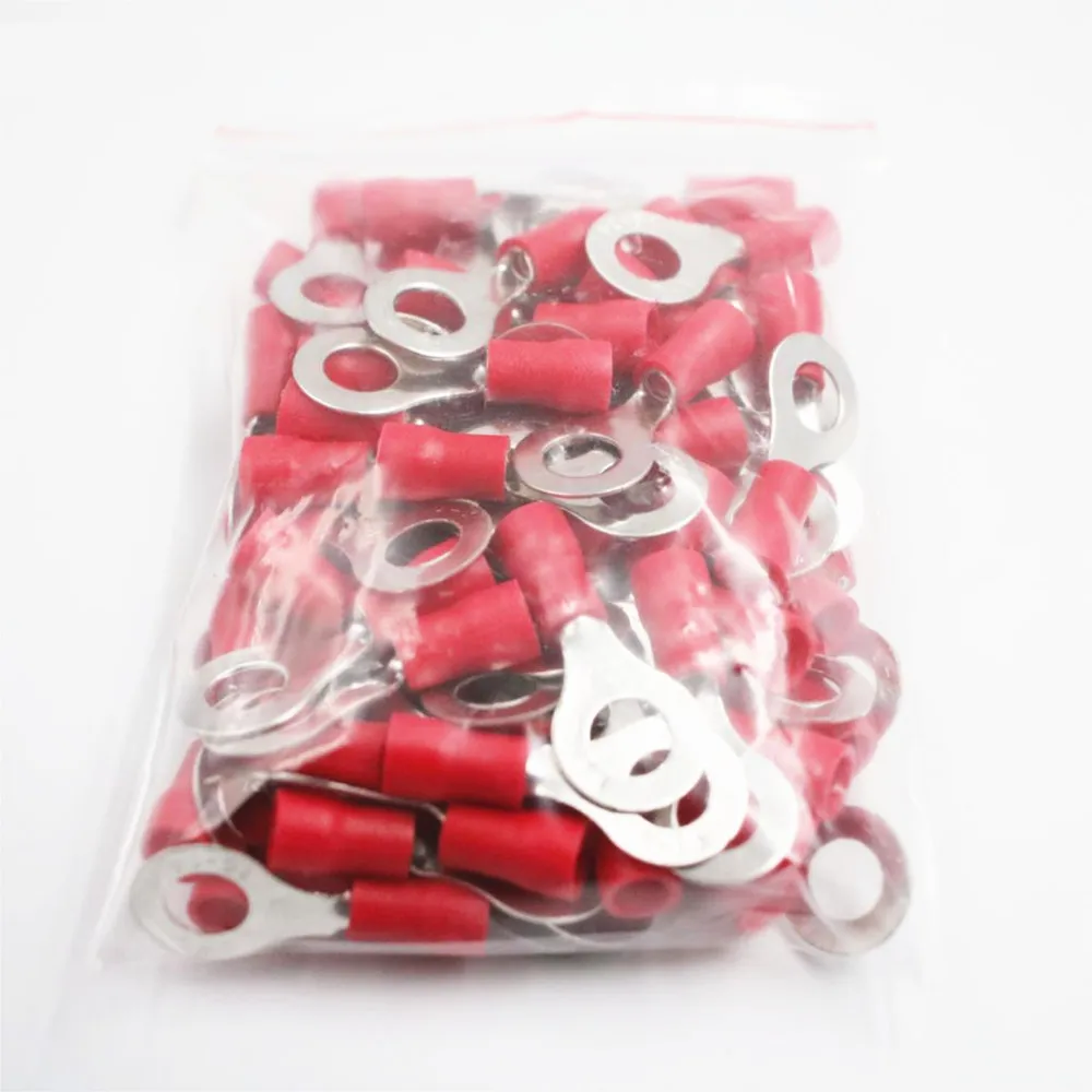 RV1.25-6 Red 22-16 AWG 0.5-1.5mm2 Insulated Ring Terminal Connector Cable Wire Connector 100PCS/Pack RV1-6 RV