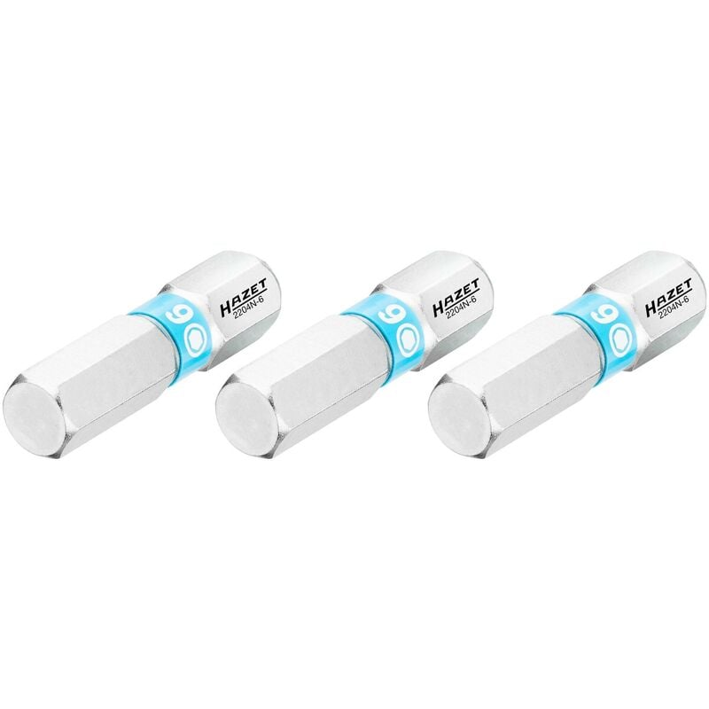 Attacco esagonale ISO 1173 C6,3 (1/4“), ISO 2351-3 C6,3 Attacco: Attacco esagonale, massiccio, 1/4 di pollice (6,3 mm) Presa di forza: Profilo esagonale interno Apertura chiave: 6 mm Dimensioni / Lunghezza: 25 mm Per utilizzo con avvitadadi ad impulso Nuovo programma bit HAZET I bit di HAZET - Un inserto giravite per ogni esigenza! Zona di torsione ottimizzata per la migliore trasmissione di forza al profilo / vite Il materiale particolarmente temprato previene il rischio di una rottura prematura della punta Durata extra lunga grazie a geometrie definite in modo ottimale Ugualmente adatto per l'uso manuale e meccanico (anche per avvitatori ad impulso) Il profilo viene identificato rapidamente grazie alla codifica a colori HAZET evidente sull'inserto giravite Numero utensili: 3 Standard Sechskant-Antrieb ISO 1173 C6,3 (1/4″), ISO 2351-3 C6,3 Azionamento 1/4 Zoll (6,3 mm) Sechskant massiv Lunghezza (cavo) 25 Unità di uscita Innen Sechskant Profil Dimensioni dell'imballaggio 1