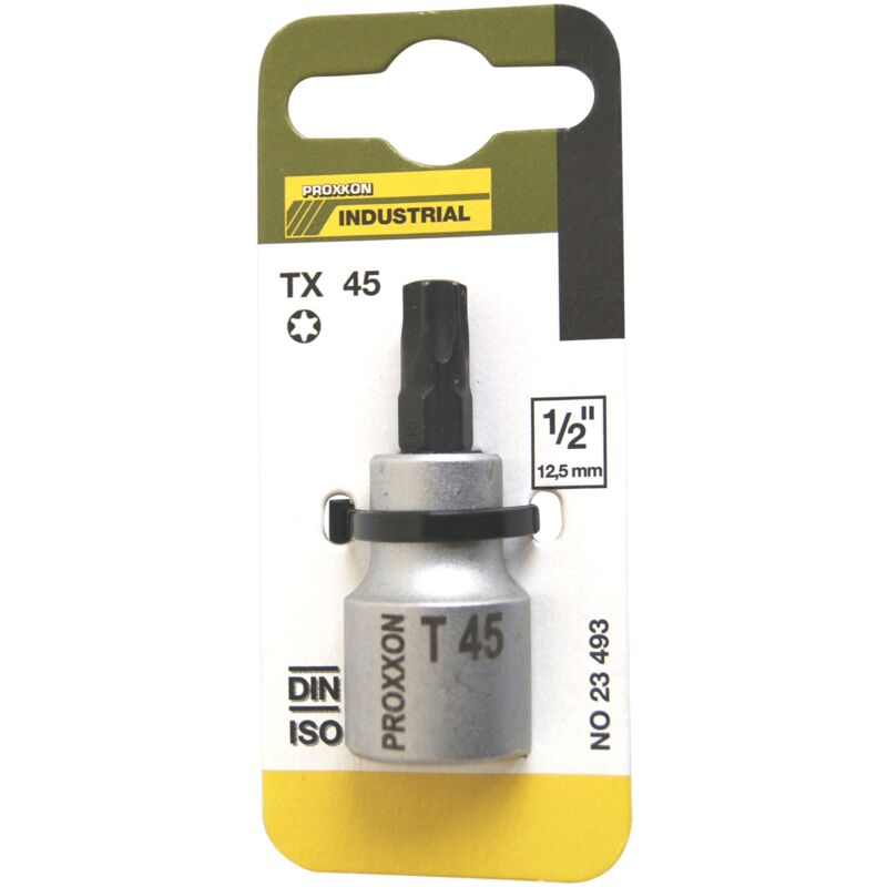 Inserti a bussola TX da 1/2 '', 55 mm. Testa in acciaio al cromo-silicio-manganese-molibdeno. Zoccolo in acciaio CrV per una durata di uso prolungata.
