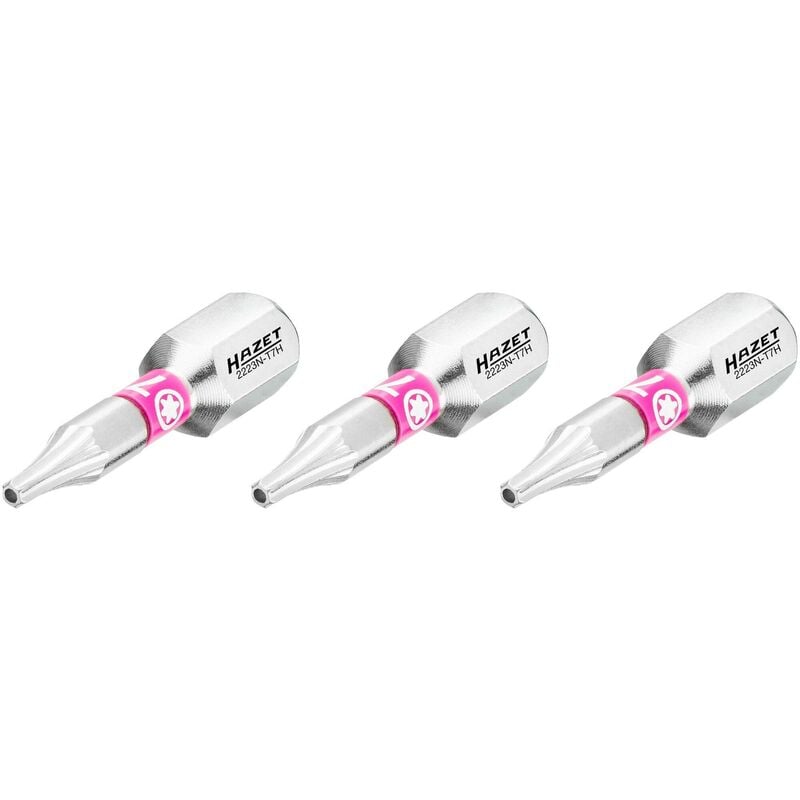 Attacco esagonale ISO 1173 C6,3 (1/4“) Attacco: Attacco esagonale, massiccio, 1/4 di pollice (6,3 mm) Presa di forza: Profilo TORX® Tamper Resistant Apertura chiave: ∙ T7H Dimensioni / Lunghezza: 25 mm Per utilizzo con avvitadadi ad impulso Nuovo programma bit HAZET I bit di HAZET - Un inserto giravite per ogni esigenza! Zona di torsione ottimizzata per la migliore trasmissione di forza al profilo / vite Il materiale particolarmente temprato previene il rischio di una rottura prematura della punta Durata extra lunga grazie a geometrie definite in modo ottimale Ugualmente adatto per l'uso manuale e meccanico (anche per avvitatori ad impulso) Il profilo viene identificato rapidamente grazie alla codifica a colori HAZET evidente sull'inserto giravite Numero utensili: 3 Standard Sechskant-Antrieb ISO 1173 C6,3 (1/4″) Azionamento 1/4 Zoll (6,3 mm) Sechskant massiv Dimensione dell'uscita T7H Lunghezza (cavo) 25 Unità di uscita Tamper Resistant TORX® Profil Dimensioni dell'imballaggio 1