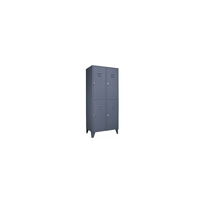 Armadietto in acciaio con piedini, scomparti a metà altezza, ante piene, larghezza scomparti 400 mm, 4 scomparti, grigio-azzurro. Fornitura = montato. Altezza = 1850 mm. Profondità = 500 mm. Larghezza = 800 mm. Colore corpo = grigioazzurro RAL 7031. Colore porta = grigioazzurro RAL 7031. Serratura = chiavistello girevole. Numero scomparti in larghezza = 2 pz. Numero scomparti = 4 pz. Larghezza scomparti = 400 mm. Materiale = lamiera d'acciaio. Altezza armadietto = 1850 mm. Dotazione interna = 1 asta appendiabiti, 4 ganci scorrevoli. Larghezza interna = 398 mm. Altezza interna = 820 mm. Profondità interna = 475 mm. Tipo di porta = ante piene. Altezza scomparti = 820 mm. Larghezza ripiani = 400 mm. Profondità ripiani = 500 mm. Altezza piedini = 150 mm. Struttura = saldata a punti. Superficie = con verniciatura a forno. Robusto armadietto con piedini a norma DIN 4547. Spazio ottimizzato grazie agli scomparti a mezza altezza. Disponibili in varie larghezze e colori. A scelta con ante
