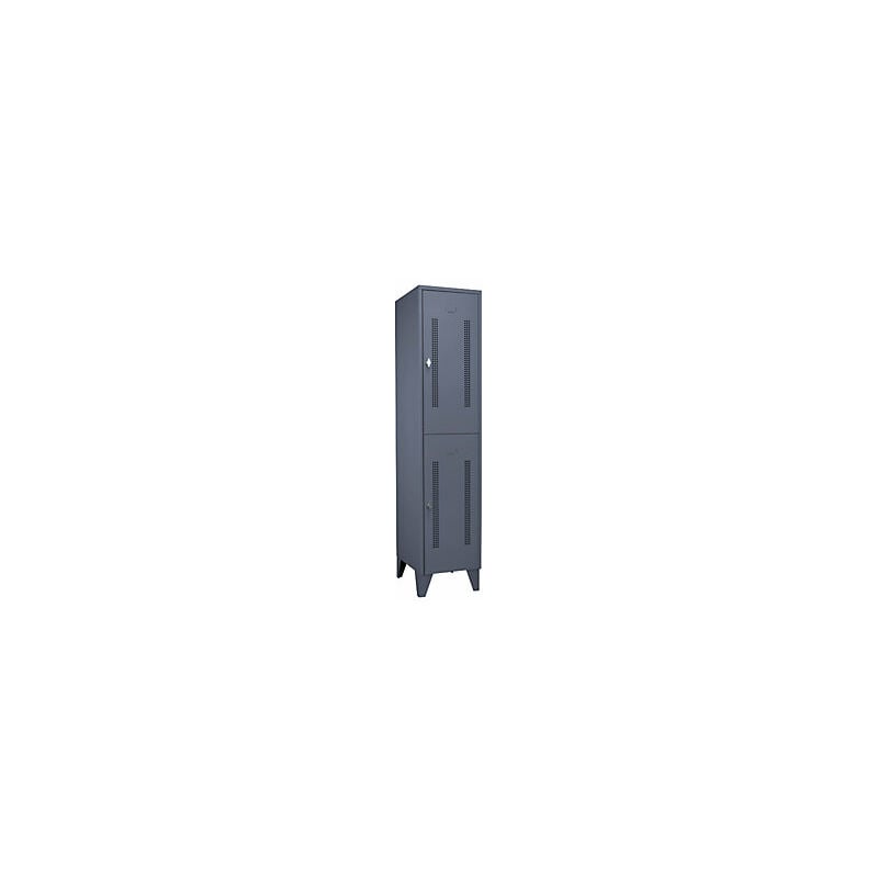 Armadietto in acciaio con piedini, scomparti a metà altezza, ante forate, larghezza scomparti 400 mm, 2 scomparti, grigio-azzurro. Fornitura = montato. Altezza = 1850 mm. Profondità = 500 mm. Larghezza = 400 mm. Colore corpo = grigioazzurro RAL 7031. Colore porta = grigioazzurro RAL 7031. Serratura = chiavistello girevole. Numero scomparti in larghezza = 1 pz. Numero scomparti = 2 pz. Larghezza scomparti = 400 mm. Materiale = lamiera d'acciaio. Altezza armadietto = 1850 mm. Dotazione interna = 1 asta appendiabiti, 4 ganci scorrevoli. Larghezza interna = 398 mm. Altezza interna = 820 mm. Profondità interna = 475 mm. Tipo di porta = ante forate. Altezza scomparti = 820 mm. Larghezza ripiani = 400 mm. Profondità ripiani = 500 mm. Altezza piedini = 150 mm. Struttura = saldata a punti. Superficie = con verniciatura a forno. Robusto armadietto con piedini a norma DIN 4547. Spazio ottimizzato grazie agli scomparti a mezza altezza. Disponibili in varie larghezze e colori. A scelta con ante