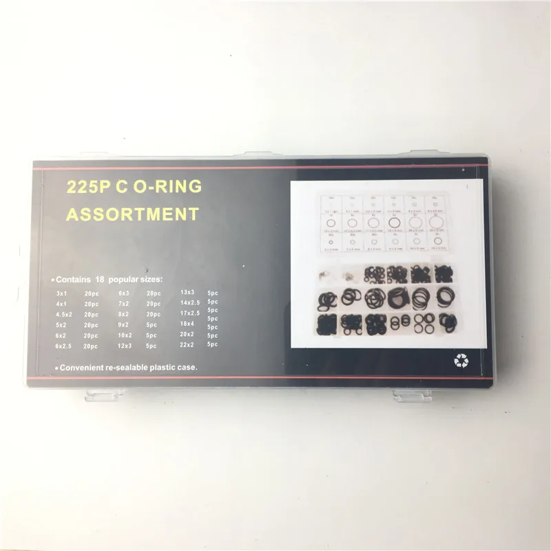 225pcs/lot Black Rubber O Ring Assortment Washer Gasket Sealing O-Ring Kit 18 Sizes with Plastic Box