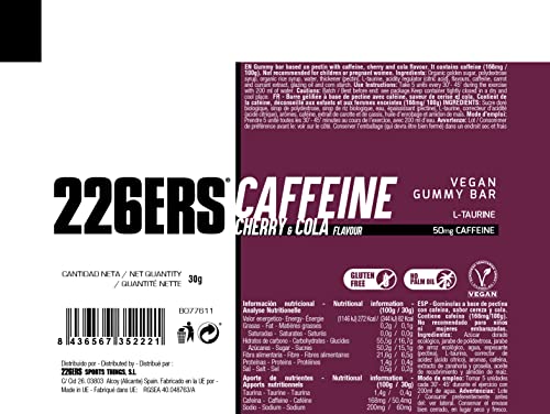 226ERS Vegan Gummy Bars | Barrette Energetiche Vegane con Caffeina, Cherry Cola - 42 Barrette x 30g