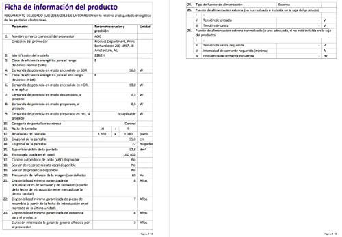 AOC - 21 5 Led 16.9 1920X1080 60Hz 100X1