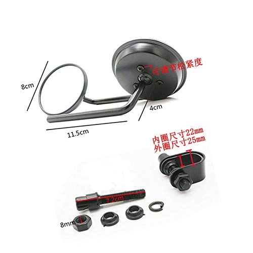 Moto 7/8"-1" (22mm-25mm) Supporto manubrio rotondo Specchietto retrovisore laterale per Honda Kawasaki Suzuki Harley Yamaha Cafe Racer Cruiser Chopper Old School Custom (Nero)