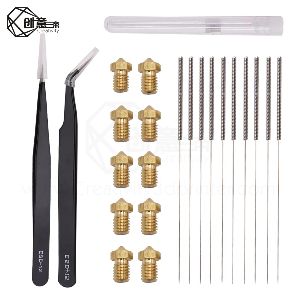 22PCS 3D Printer Nozzle and Cleaning Kit 0.4 Mm Mk8 V6 Nozzles 0.4 mm Needles and Tweezers Tool Kit ESD12/15 3D printer Parts