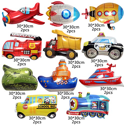22pcs Trasporto Veicoli Foil Balloon Riutilizzabile Mini Auto Palloncini Veicoli Alluminio Foil Balloons Auto a tema Bambini Compleanno Decorazione Forniture