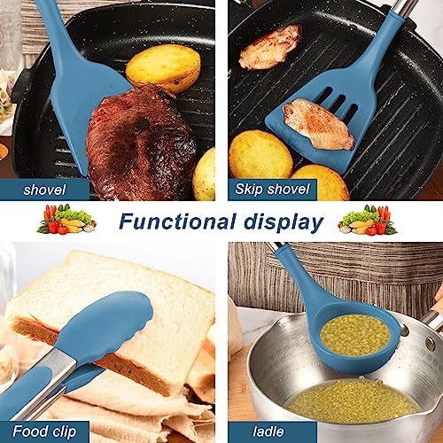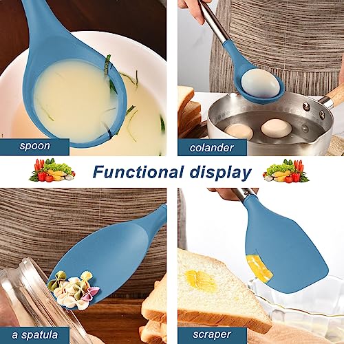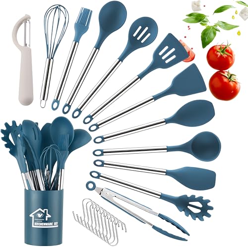 DLD 23-Piece Set di pentole in acciaio inox, cottura, antiaderente, silicone resistente al calore con supporto e pelapatate, utensili da cucina (blu)