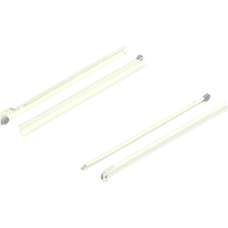 STANDARD 230M4000 acciaio lunghezza nominale: 400 mm Composizione dell'articolo: set portata dinamica: 25 kg tipo di montaggio della guida di scorrimento: montaggio sotto il cassetto colore spondine/profilo cassetto: RAL 9001 bianco crema Contenuto: set Finitura: R9001 bianco crema Confezioni di imballo: 1 - 25