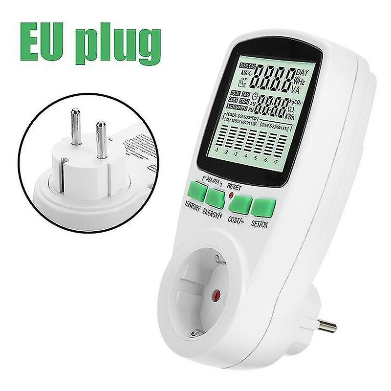 Specifica: nuovo di zecca Tipo: misuratore di potenza Dimensioni: ca. 76 x 78 x 150 mm Valore nominale: 230 V CA / 50 Hz / 16 A / 3680 W Intervallo di tensione: 200-276 V CA (precisione 1,5%) Intervallo di corrente: 0,005-16 A (precisione 2%) Precisione di misura: 2% Intervallo cumulativo di visualizzazione: 0-9999 KWH Misura gamma di frequenza: 45-65Hz Consumo interno