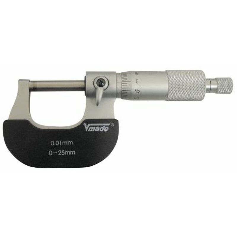 Micrometro Campo di misura 75 - 100 mm Risoluzione 0,01 mm Passo da 0,5 mm Errore di 5µm Per una facile diritti quando misurano - cestello di scala e - Manicotto cromato opaco - Staffa Hammerschlag grigia, con hand termico - Guscio isolante - Superfici di metallo duro, planparallel lappata - Leva morsetto per rapido e sicuro di - Forza di misura costante grazie a cricchetto - Fornito con chiave di regolazione e regolazione Mass in scatola di plastica