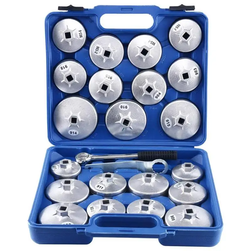 23pcs Aluminum Alloy Cup Type Oil Filter Cap Wrench Socket Removal Tool Set 1/2"