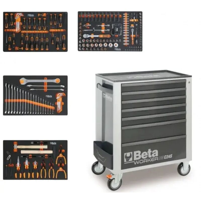 La cassettiera mobile con assortimento in termoformati 235 Pz. Beta BW 2400S 7/I-S è una completa cassettiera, perfetta per hobbisti o professionisti che vogliono arredare la propria officina o il proprio garage con la qualità dei prodotti Beta.Questo articolo accessoriato della linea Beta Worker si compone della pratica cassettiera realizzata con cassetti di differenti altezze, 5 cassetti altezza 70 mm, 1 altezza 140 mm ed 1 con altezza 210 mm che vi permetterà di riporre i vostri attrezzi con ordine e precisione ottimizzando notevolmente le operazioni.Il piano dei cassetti è coperto da un tappetino in gomma espansa, per evitare possibili danneggiamenti accidentali durante l'utilizzo.Predisposta con quattro ruote da 125 mm di diametro, 2 fisse e 2 girevoli (di cui una con freno), la movimentazione risulta essere semplice e veloce, permettendovi di trasportare tutta la vostra dotazione ovunque vi sia bisogno di lavorare.Grazie alla serratura di sicurezza centralizzata