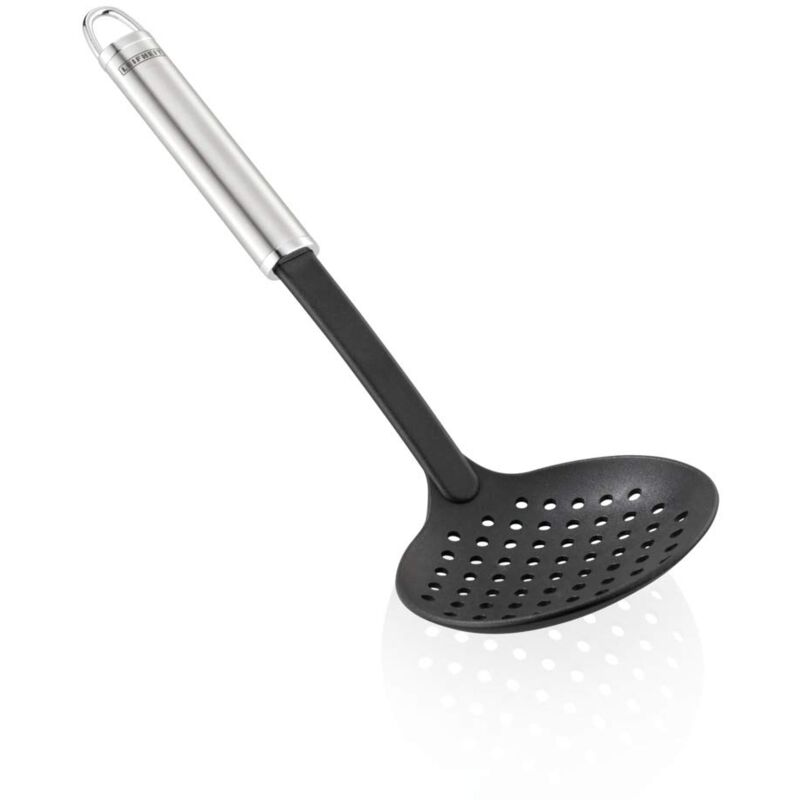 Un design sottile ed elegante combinato con acciaio inossidabile di alta qualità. Gli aiutanti da cucina Leifheit della serie Sterling ricordano la brillantezza del classico argento. Sono molto adatti per l'utilizzo a tavola e convincono con il loro funzionamento: grazie alla forma del manico ovale, la schiumarola è facile da utilizzare ed è in nylon resistente fino a 160°. Con pratico occhiello per appendere. Garanzia 2 anni Leifheit