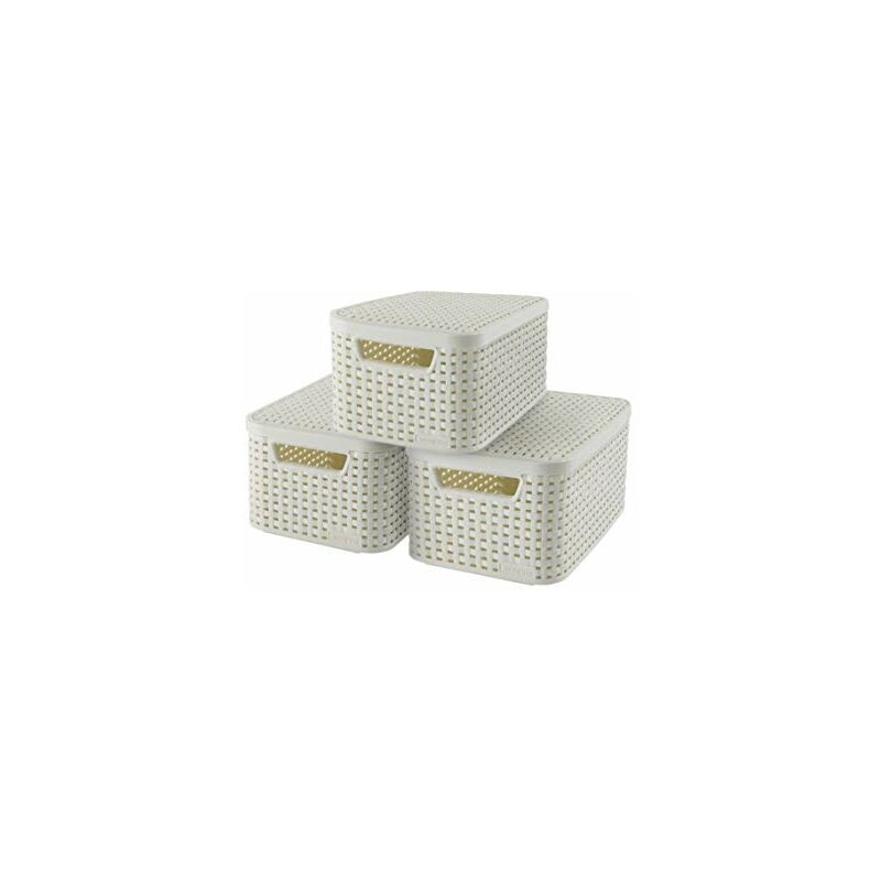 Curver - 240586 - Set di 3 ceste Style con coperchio, misura S, 7 l, colore bianco Taille S 29x20x13cmColor: Vintage Bianco;