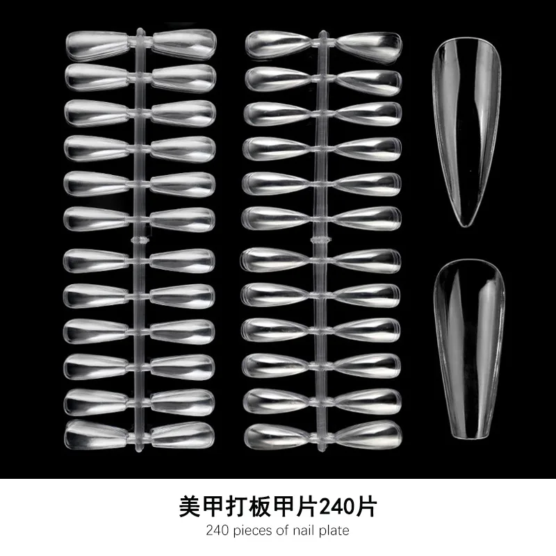 240PCS Nail Display Tips, Clear Fake Acrylic Nail Tips for Practice Foldable Flat-Back Pointed False Nail Art Display,Y7676-6778