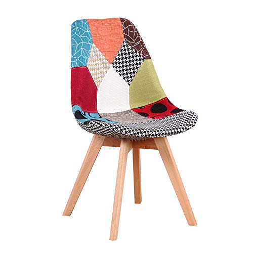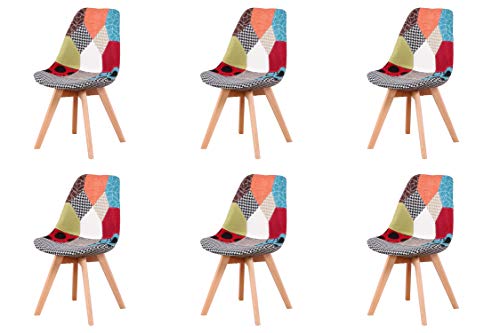 Un set di 2/4/6 sedie imbottite patchwork da pranzo, gambe in legno di faggio naturale, adatte per sala da pranzo, camera da letto, soggiorno, ecc. (rosso, 6)