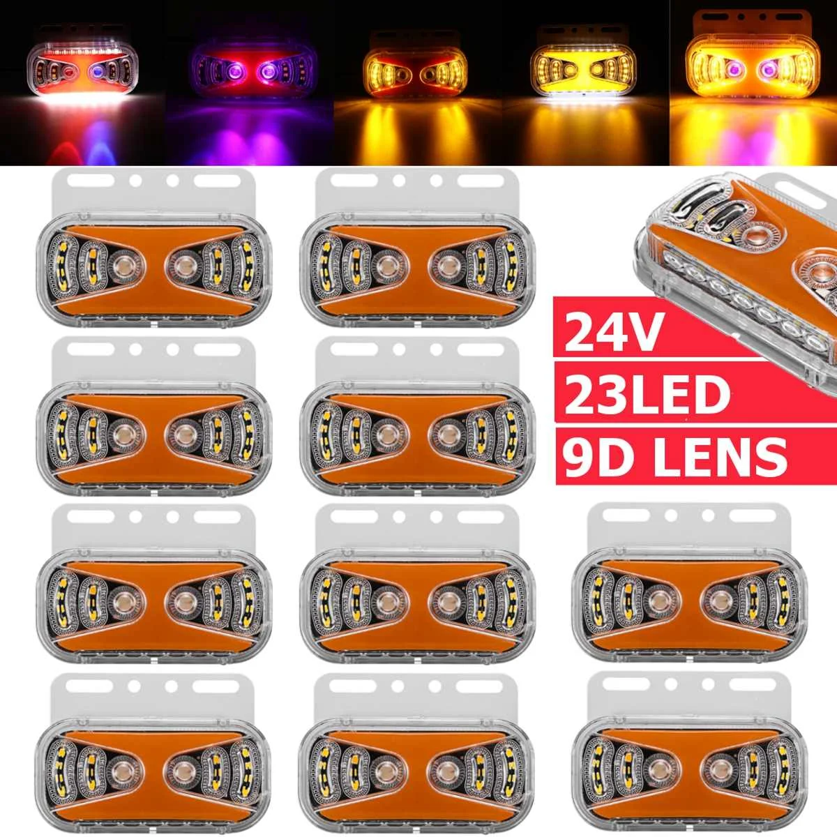 2/4/8/10X Yellow 24V 23LED Side Marker Indicator Lights 9D Position Lamp For Off-Road Truck Trailer 3000-6000K