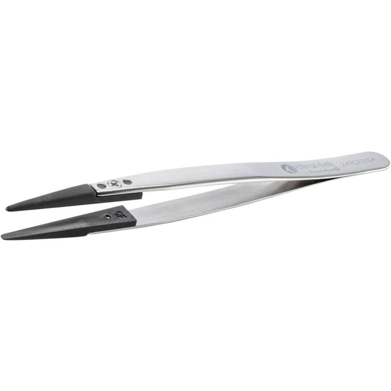Dettagli tecnici Caratteristiche pinza Punta sostituibile Dimensione del prodotto, larghezza 10 mm Dimensione del prodotto, lunghezza 130 mm Dimensioni (L x L) 130 mm x 10 mm Materiale Acciaio inox, Plastica Proprietà del materiale antiruggine, Antimagnetica, resistente agli acidi Tipo prodotto Pinzetta Pinzetta in plastica con punta sostituibile - fibra di carbonio - punte: Dritte, Dick, smussate, resistenti (A249CF). LUNGHEZZA: 130 mm - 5,12. Sicurezza ESD Le pinzette in plastica tipo 249CF con punta sostituibile sono adatte per le applicazioni in cui un componente deve essere tenuto saldamente. La plastica ESD rinforzata con fibre di carbonio conferisce alle pinzette proprietà ESD e antigraffio. Testo tradotto automaticamente Caratteristiche A prova di ESD 10^2 Ohm 3 punti di allineamento Sostituzione semplice e rapida