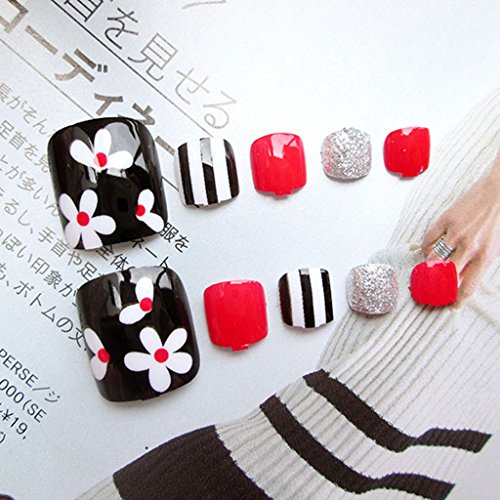 24pcs Artificiale Falso Delle Unghie Fiore Finte Punte Del Chiodo Per Estate Vacanze J31