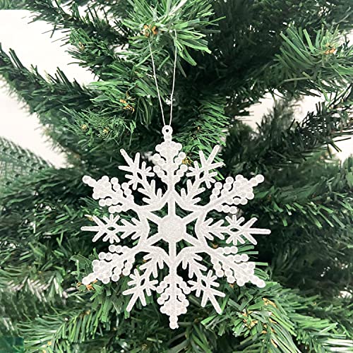 24Pcs Fiocchi di Neve Glitter di Ornamenti, Fiocci di Neve Glitter in Plastica Pendenti Ciondoli per Decorazioni Natalizie, Decorazioni di Nozze (Bianco)