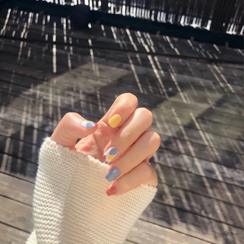 24pcs Press On Nails Temperament Contracted Short Style Wearable Fake Nails Colorful Detachable Full Cover Finished Fingernails