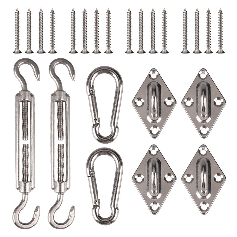 Uso:Tenditore-un dispositivo per regolare la tensione o la lunghezza di corde, cavi, tiranti e altri sistemi di tensione.Moschettone-un anello in metallo con un cancello caricato A molla, utilizzato per collegare rapidamente e in modo reversibile i componenti.Pad Eye-una piastra metallica piatta con un anello o un anello di proiezione, realizzato tutto in un pezzo, che fornisce un punto di attacco. Si è garantito da avvitamento, bullonatura, o in posizione di saldatura. Avere la corretta hardware rende l'installazione in modo molto più facile rispetto a riattacco insieme da soli. Cornici E Articoli Da Esposizione Incluso:✔8 * accessori per la vela del sole