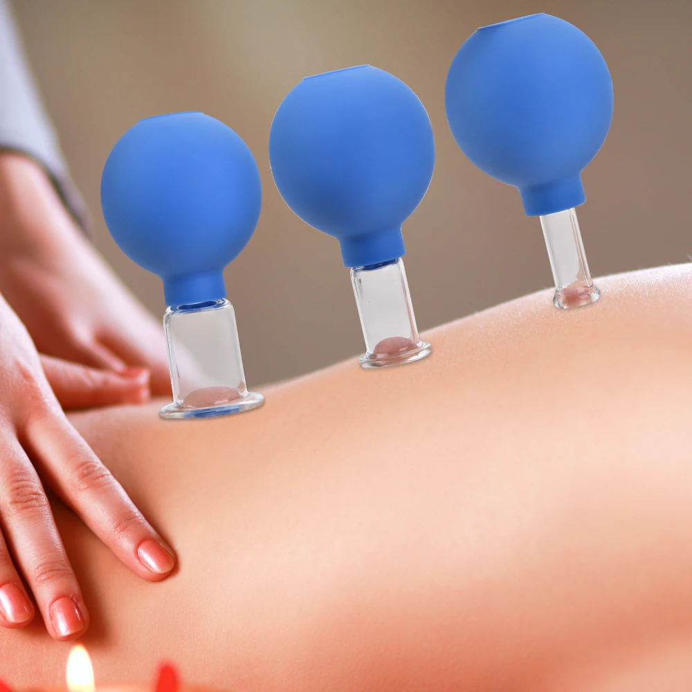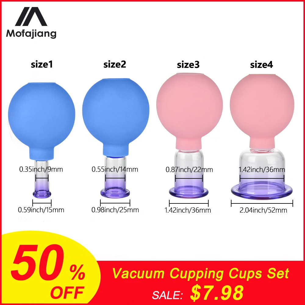 2/4Pcs Set Vacuum Cupping Cups PVC Head Glass Cups Face Body Massage Meridian Acupuncture Chinese Medical Therapy Massage Jars