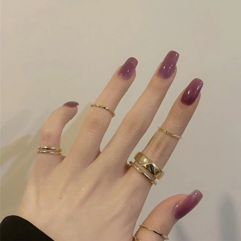 24Pcs Yellow Purple Artificial Fake Nails Lady False Nails Full Cover Nail Art Tips For Women Girls New