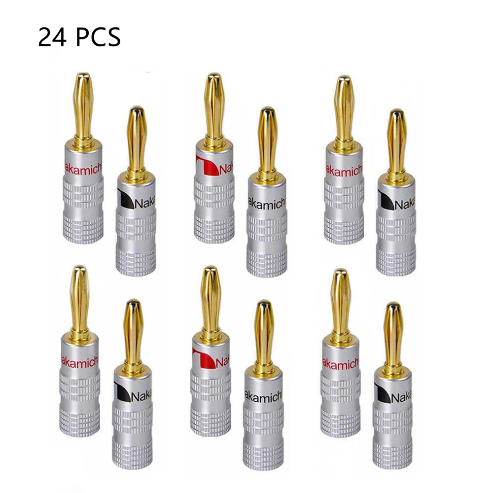 24pcs/12pair Nakamichi Banana Plug Straight Pre Amplifier 24K Gold Plated 4MM Connector Screw Lock Audio Jack Speaker Black Red