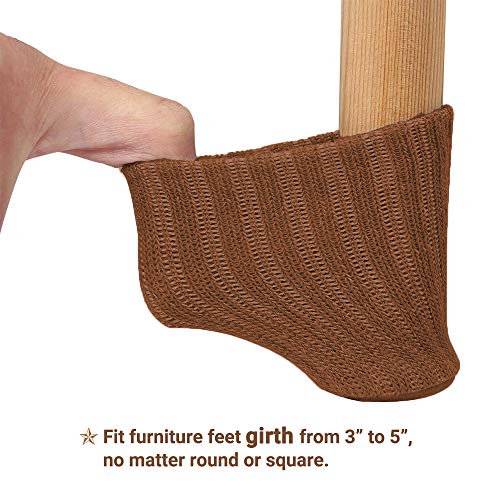 24Pezzi Sedia Gamba Calzini con Feltrini, AUHOTA Elastico a Maglia Mobili Booties, Spessore Legno Pavimento Mobili Gambe Protezioni Pads Tappi Set - Evitare Graffi E Rumore, Antiscivolo (Marrone)