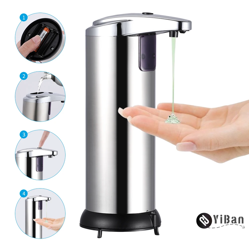 250ml Stainless Steel Automatic Soap Dispenser Handsfree Automatic IR Smart Sensor Touchless Soap Liquid Dispenser