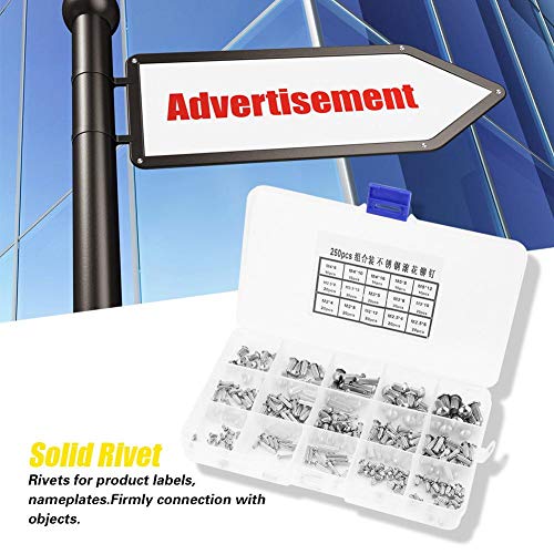 250pcs M2-M5 Rivetti in acciaio inox testa tonda rotonda rivetto zigrinato gambo rivetti dadi rivetti solido assortimento assortimento