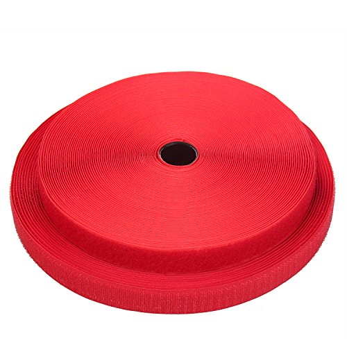 TUKA 25mx20mm Nastro Gancio e Anello da cucire, non adesivo Hook & Loop striscia, Cucire On Magico Strisce Ideale per abiti | 25m Gancio e 25m anello nastro, Rosso, TKB5004 Red