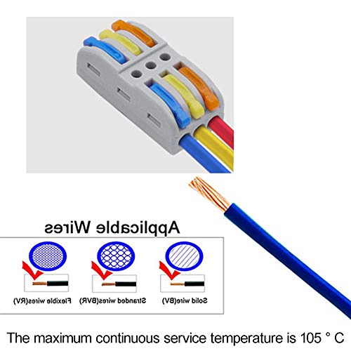 【Pratico】Sono ottimi per i collegamenti rimovibili poiché non è necessario eseguire la saldatura. Collegare qualsiasi combinazione di fili di rame solidi, flessibili e flessibili più velocemente e in modo più affidabile. Adatto per fili di rame massiccio di dimensioni 0.08-2.5mm² / 28-14 AWG;