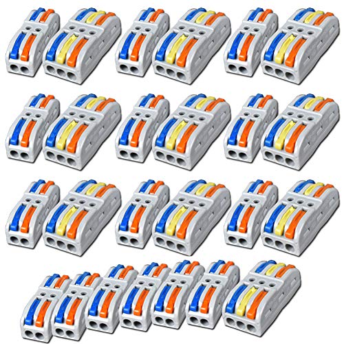 25Pcs Compact Connettore, Leva-Dado Cavo Connettore Set, Conduttore Compatto Connettore, Morsettiera Connettore Molla, Morsettiera Cavo Connettore Rapido(SPL-3 10Pcs, SPL-2 15Pcs)