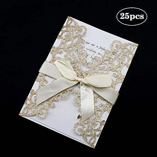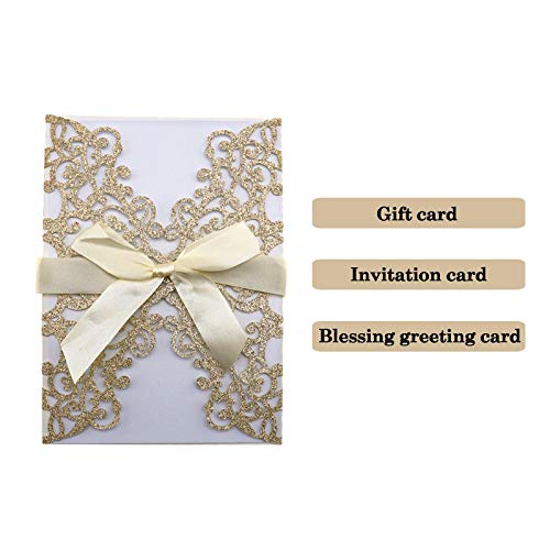Invito glitter: il design cavo tagliato al laser è delicato ed elegante, ogni nastro con fiocco è con adesivo, molto comodo da usare.