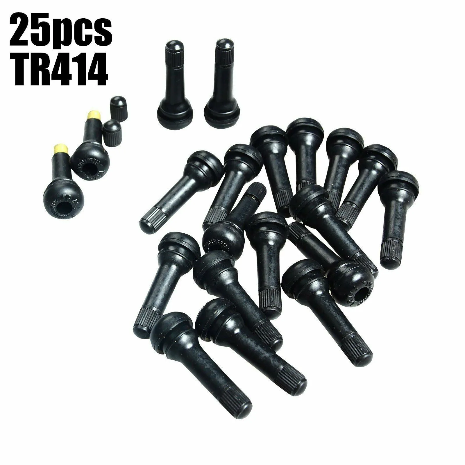 25pcs TR414 Snap-In Tire Wheel Valve Stems Medium Black Rubber Kit Universal Snap-In Tire Valve Stems