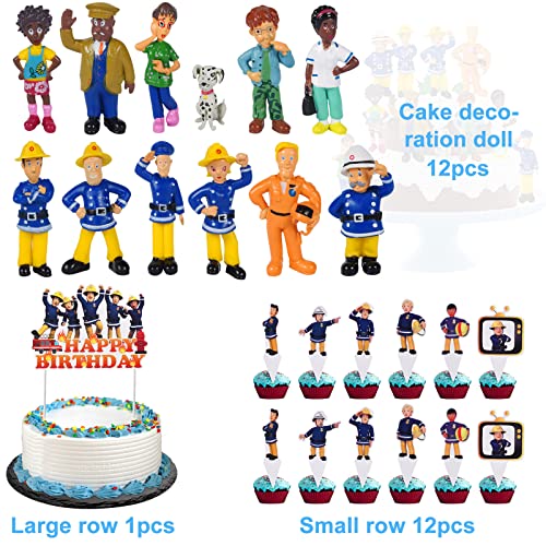 25Pezzi Pompiere Sam Topper per Torte, Pompiere Sam Mini Figures Set, Pompiere Sam Cupcake Torte, Pompiere Sam Figures Decorazione Torta Festa di Compleanno per Bambini