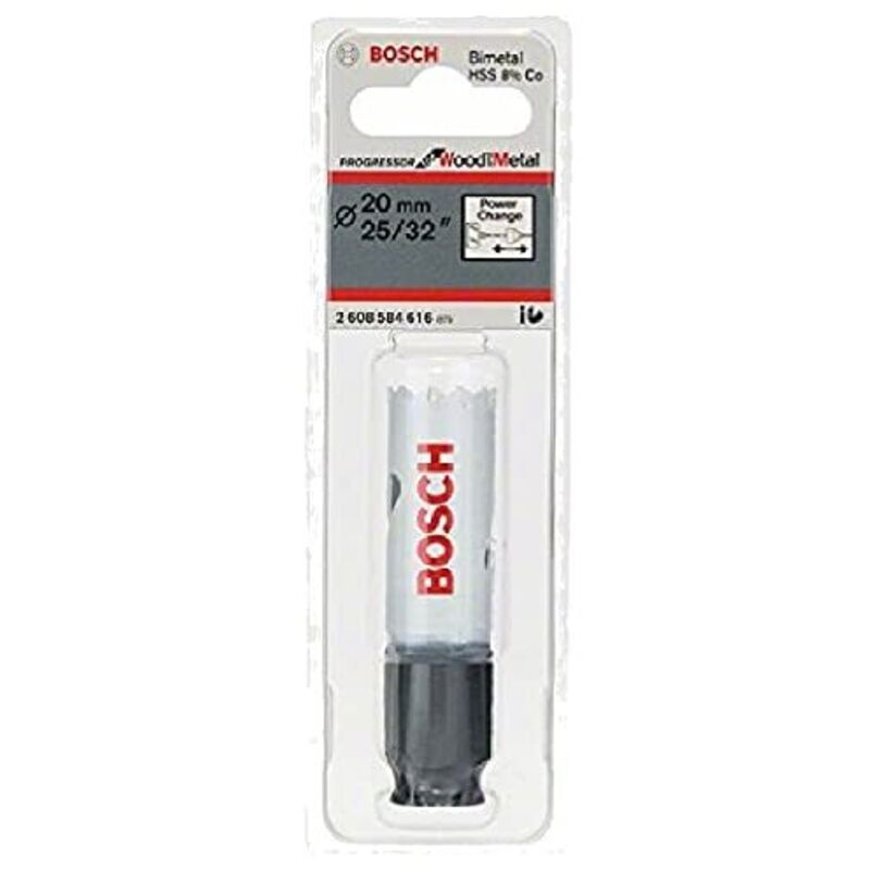 BRAND: BOSCH MODELLO: 2.608.584.616 BOSCH SEGA A TAZZA mm.20 HSS bi-metallo in lega di cobalto 8%. Striscia denti progressiva per un morso potente e rimozione accelerata dei trucioli. La qualità di taglio dipende dalla velocità e refrigerante usato.